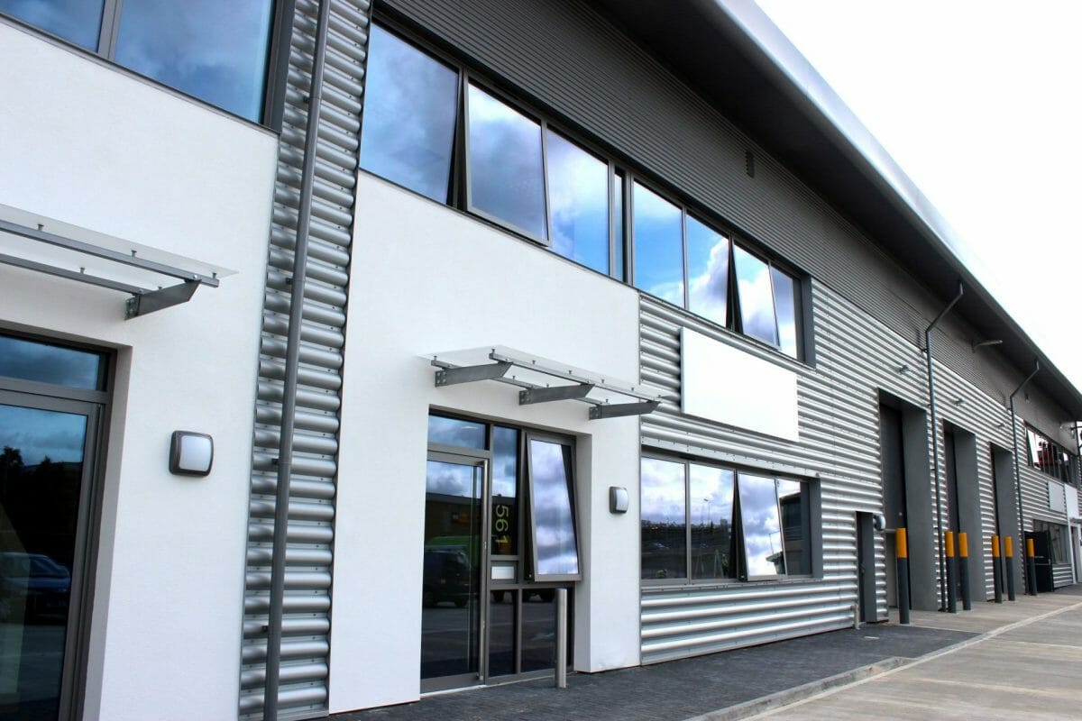 This project involved demolition of the existing industrial buildings followed by a new build single storey steel frame that was clad in a CA profile with rendered front panels and a rolled standing seam roof.