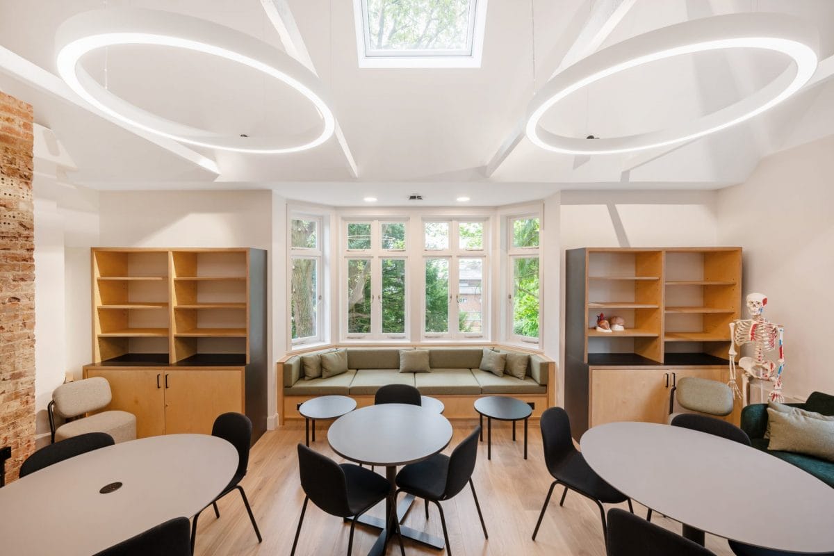 Royal Holloway appointed us to deliver the extensive refurbishment of Chestnuts building within the Royal Holloway campus in Egham to create a teaching facility for the University’s new Department of Health Studies.