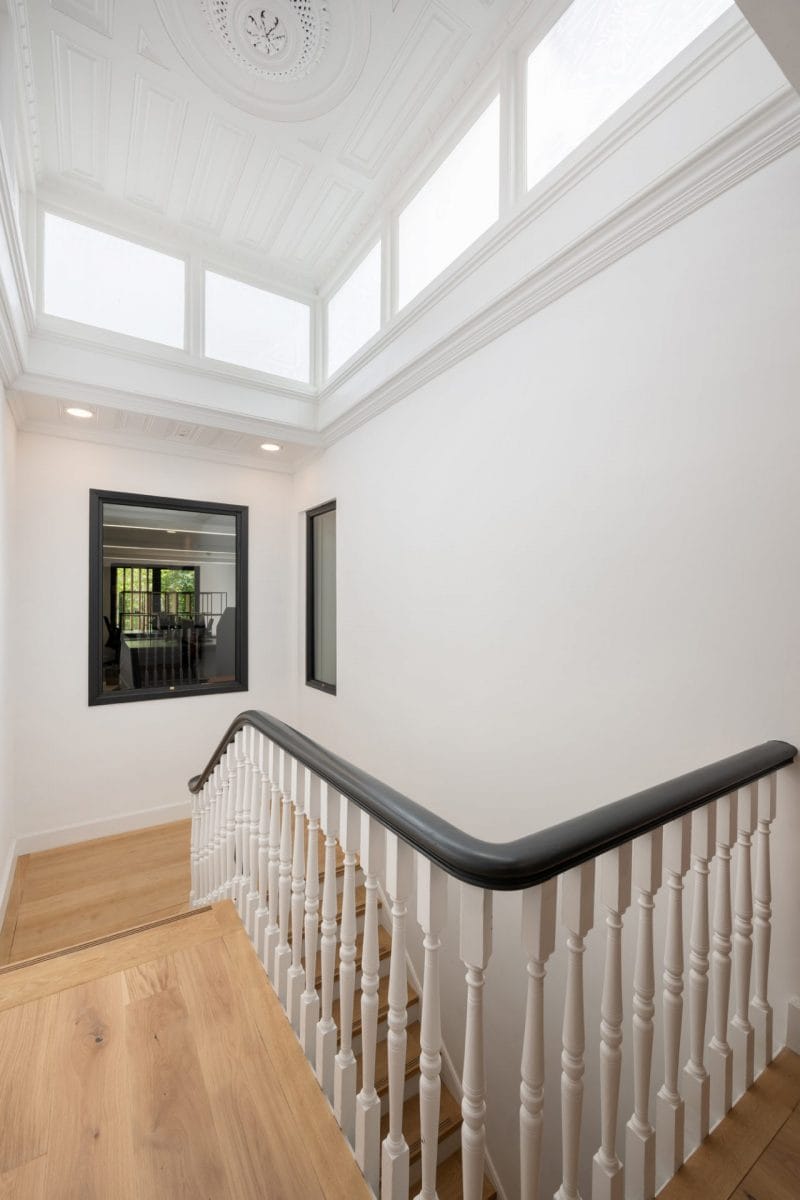 Several internal walls needed to be taken down due to instability and replaced with new timber stud walls without reconfiguring the layout of the rooms. Much of the internal brickwork was structurally unsound and needed to be repaired using highly skilled trades as the brickwork remained exposed in many locations. This element of work was delivered by our in-house bricklayers, who replaced and repaired the brickwork to a high-quality finish. The building’s parapets were re-built and a new DPC was installed after replacing the ground floor joists. In some cases, we installed a new concrete floor.