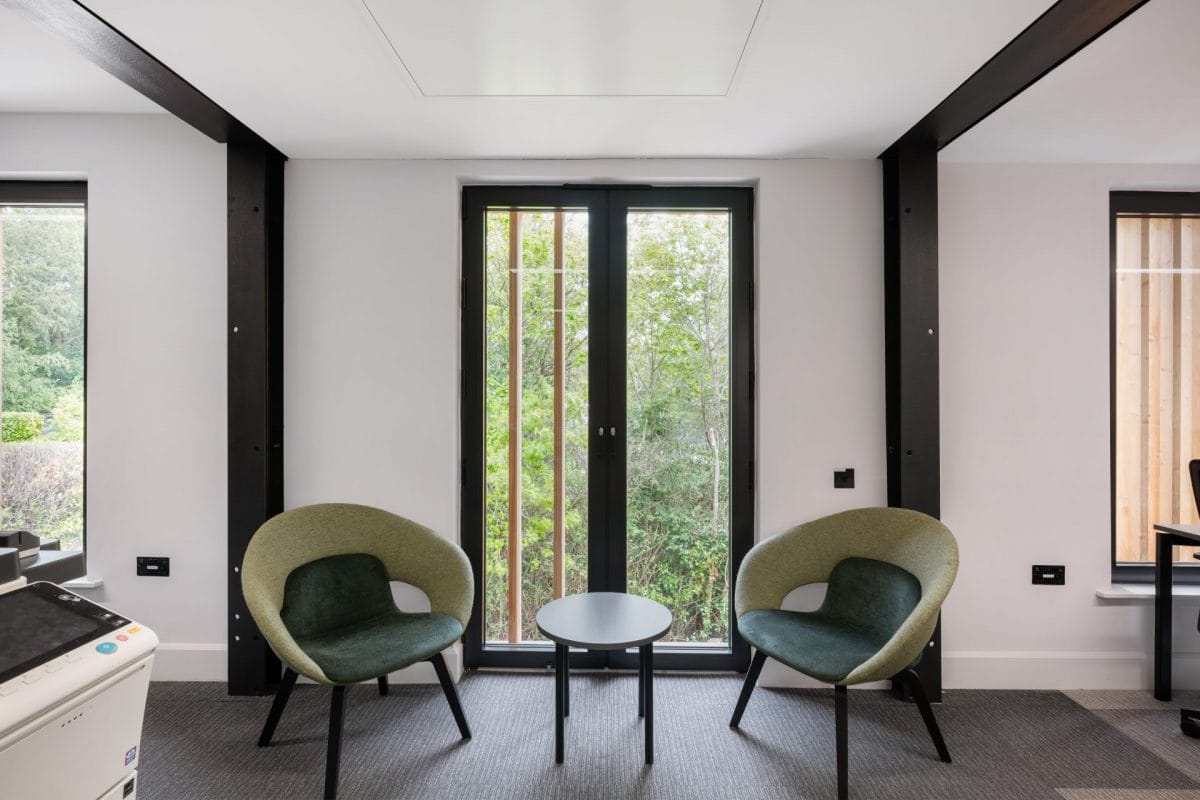 The external north and east facing elevations were clad in a sustainable larch cladding with mineral wool insulation to provide a decorative façade that was also thermally efficient and carbon friendly