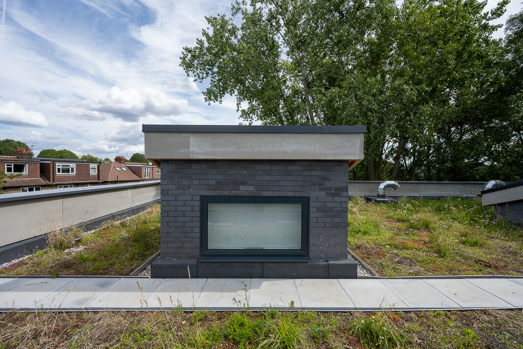 This project incorporates sustainability elements and features a green roof, which replaces the planted areas covered by the footprint of the building. We worked with the parks department to ensure that all trees that had to be felled during the works, were chopped into logs and stacked in the adjacent woods to form bug houses. Seven new trees were planted to replace those removed.