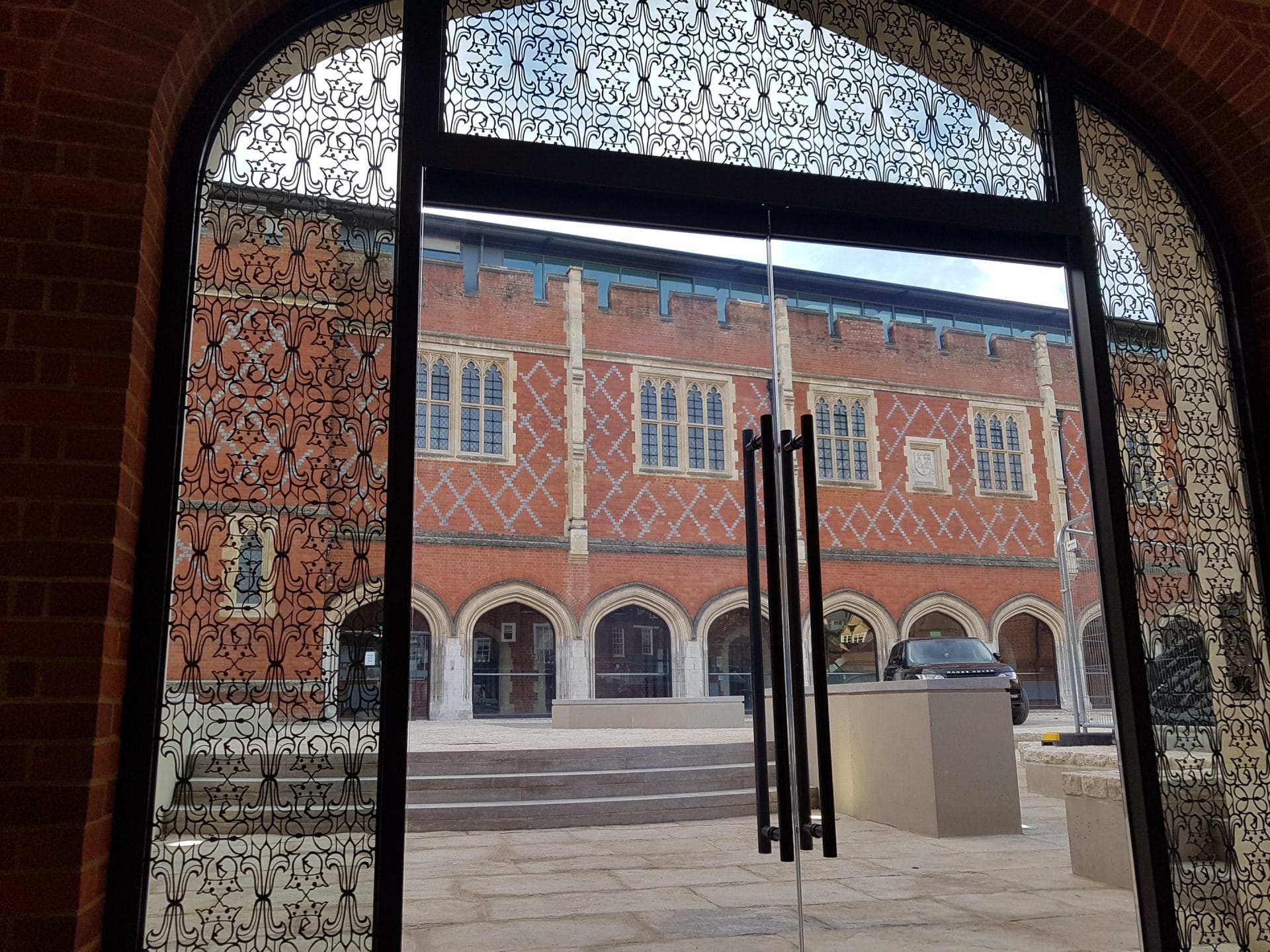 The works comprise the newly built extension of a Grade II listed structure. Phase 1 (The Visitor’s Centre) now forms the new entrance to the Headmaster’s suite, providing a reception area together with offices. Featuring a main arched entrance with bespoke Okalux glazing and bronze decorative detail.