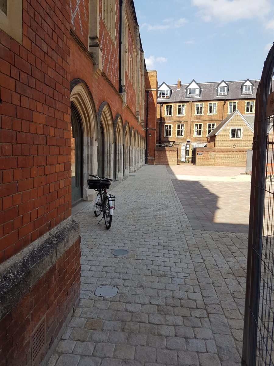 The landscaping package is extensive, consisting of mainly hard landscaping – with complete reconstruction of the Purbeck cobbled pathways and courtyards, installation of Purbeck honed and curved seating benches, and steps down to the new entrance. The external works involved the removal and restoration of a historic cannon, refurbishment of Victorian cast iron gates and railings, installation of specialist tree root systems and planting of new root-balled Tulip trees and soft landscaping in planting beds.