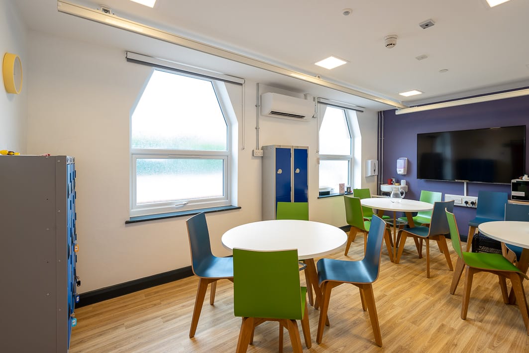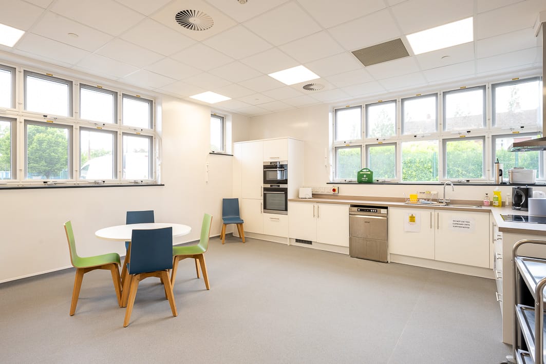 To provide appropriate teaching facilities for SEND students, our scope included strip out of existing building to form the new layout including significant structural alterations and temporary works, replacement of MEP services, new commercial grade air source heat pumps, installation of hoists to all teaching spaces and toilets, underfloor heating and a sprinkler systems, together with external works. The building also required a partial replacement of the roof and full external window and door replacements.