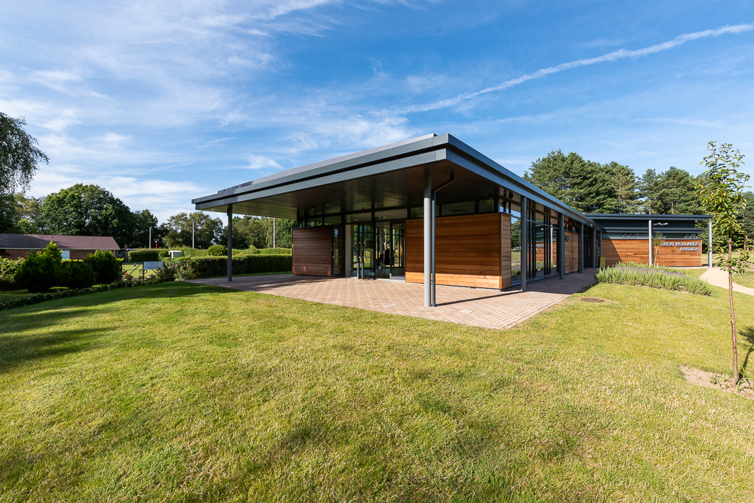 The construction features masonry cavity walls with Cedar cladding. Internally the new building benefits from energy-efficient underfloor heating, with modern wash rooms and changing facilities.
