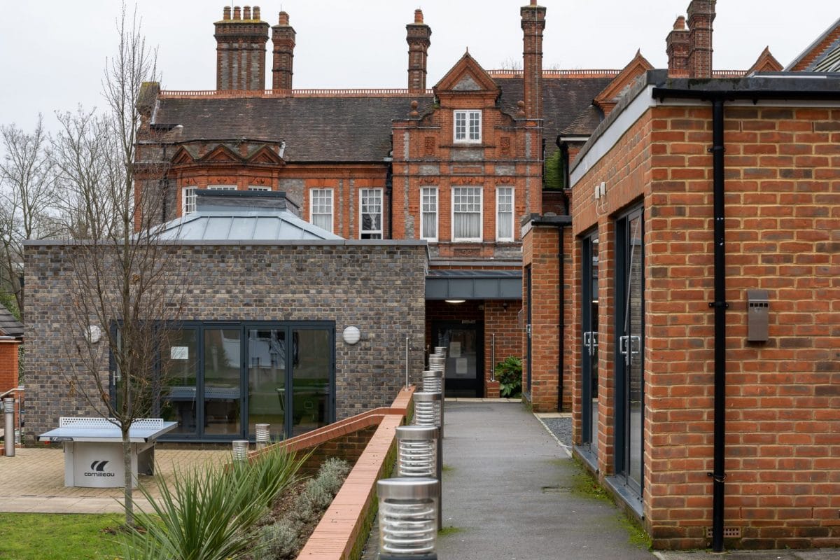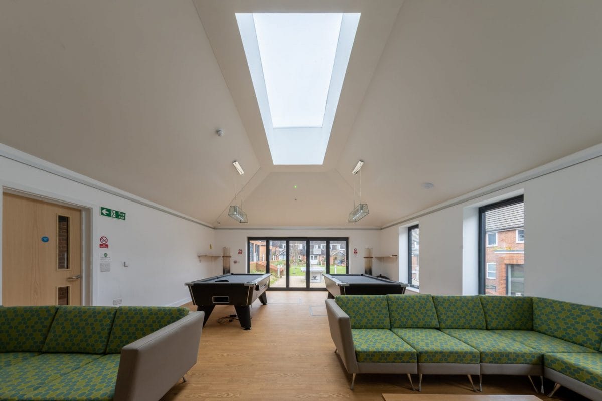 The project also included the construction of a communal lounge area providing recreational space and indoor games facilities for the students. The building features a skylight, while the bi-fold windows at the end of the single-storey building lead out to a paved games area.