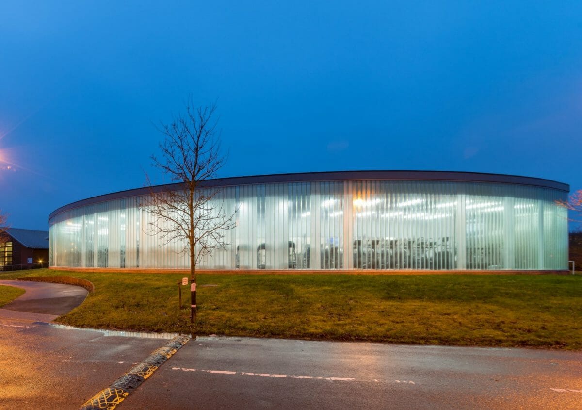 The brief was to construct a contemporary glazed curved design extension to the existing gymnasium. Including the creation of an external deck for the existing crèche, a new main entrance structure, internal alterations and an art installation. The concept of the design enhanced the existing curved façade of the sports centre and provide a new gymnasium space, giving a higher ceiling and more space for new equipment whilst maximising energy efficiency.